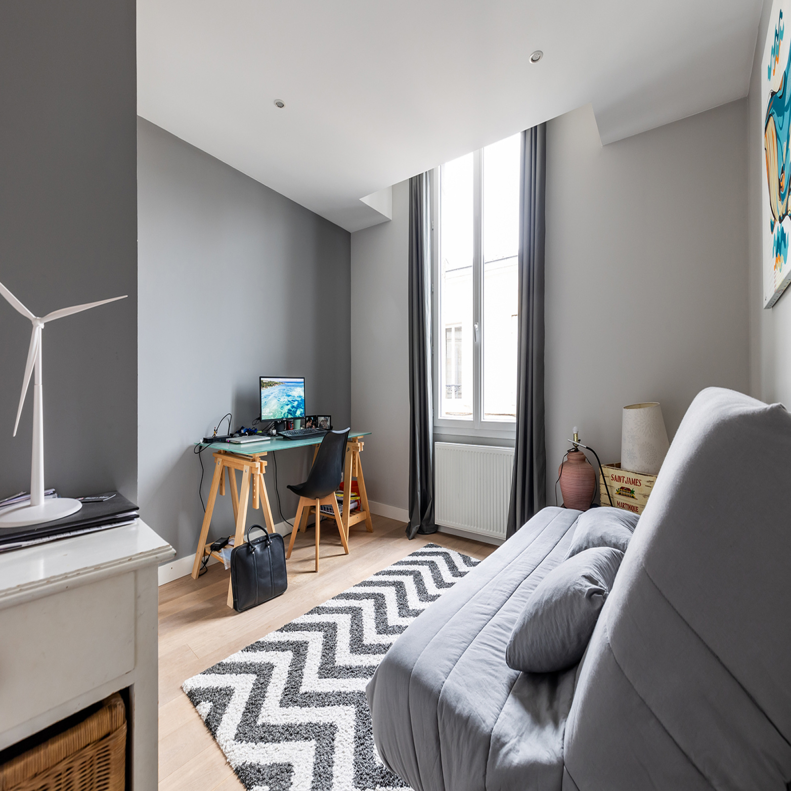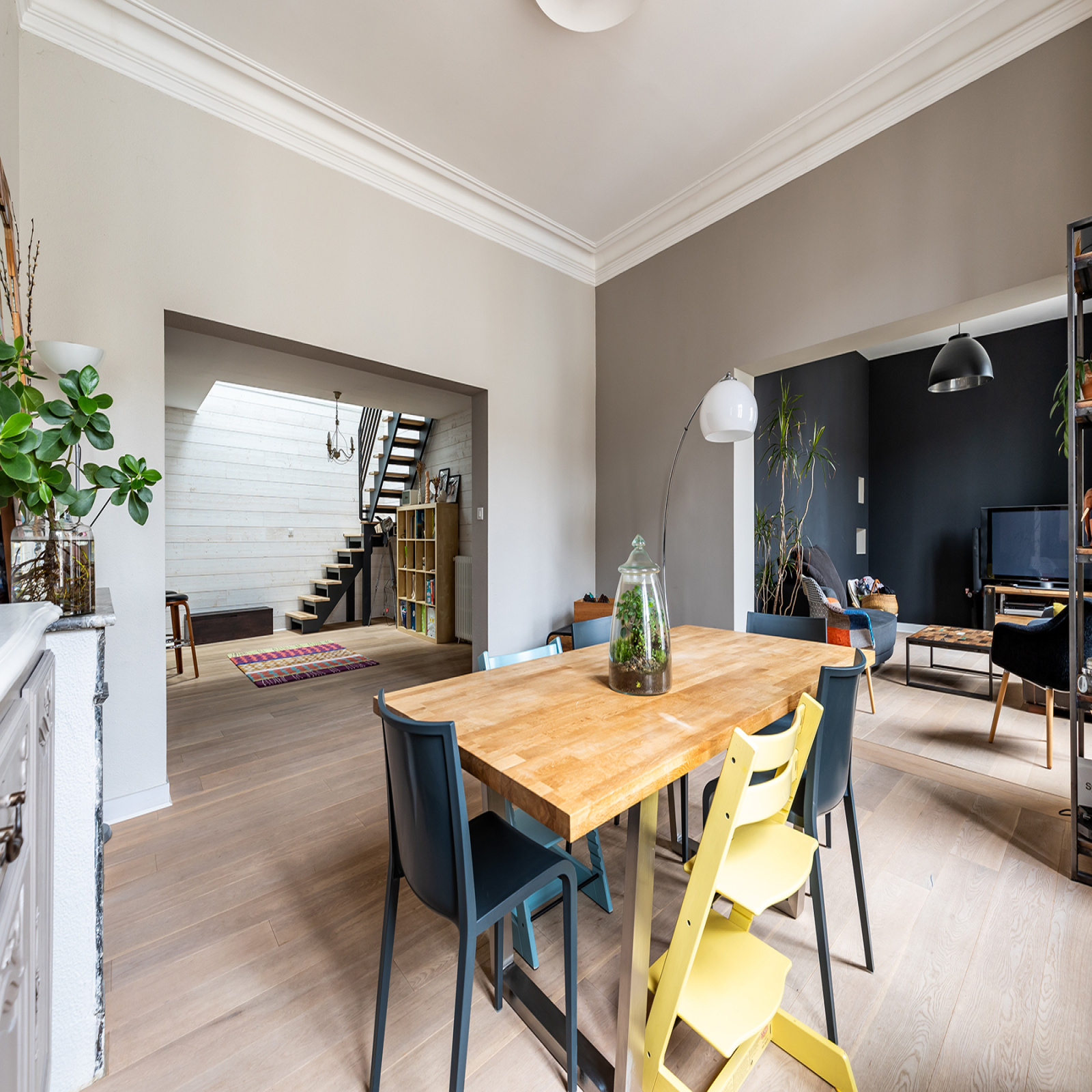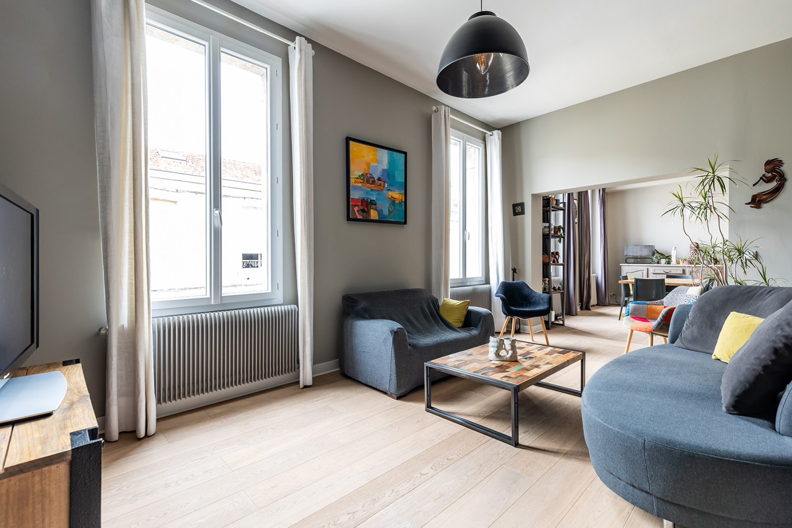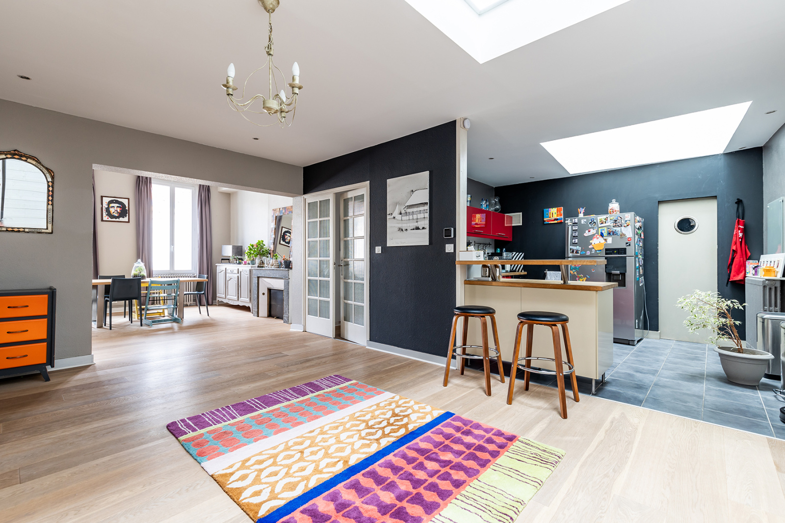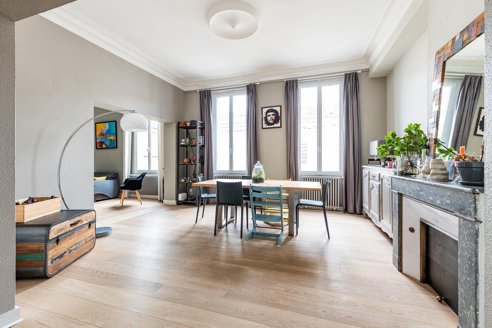 Drivet immobilier vous propose à la vente dans le secteur prisé du Jardin Public, un appartement familial de type t6 en duplex au premier étage d'un bel immeuble d'angle en pierre avec garage privatif.