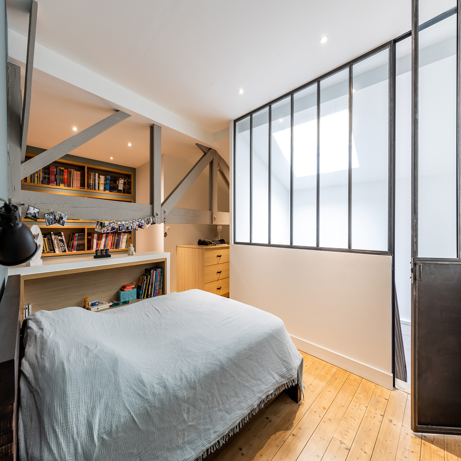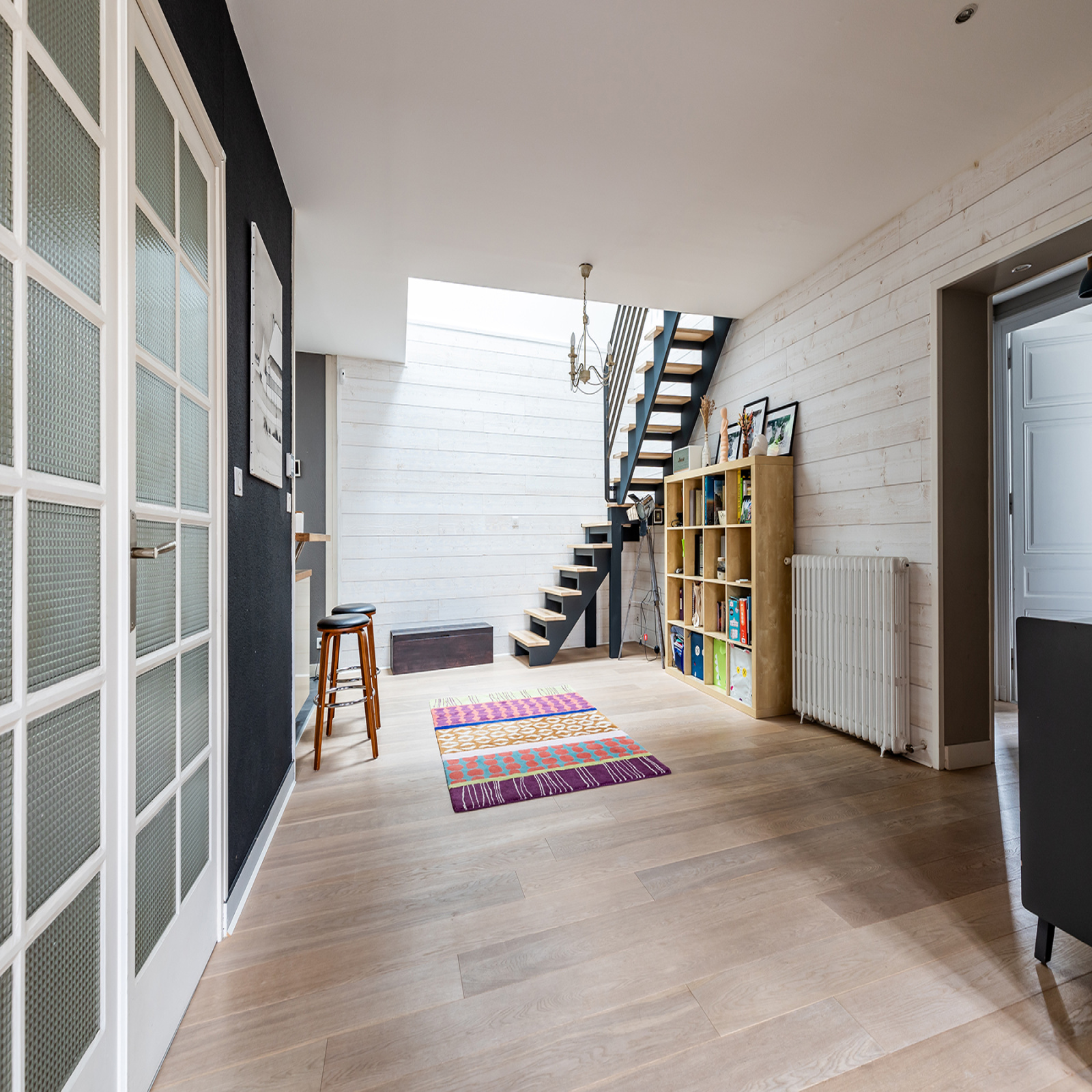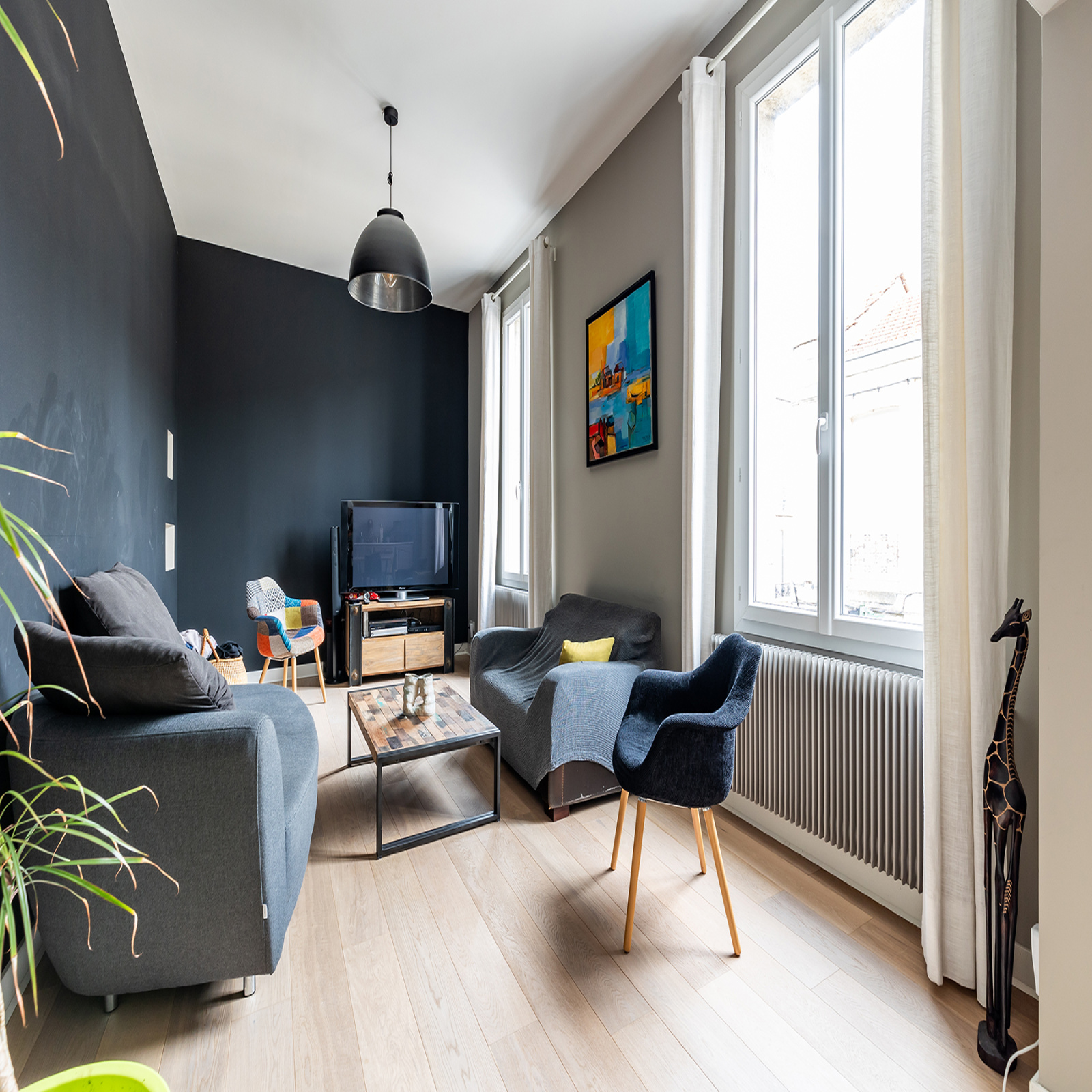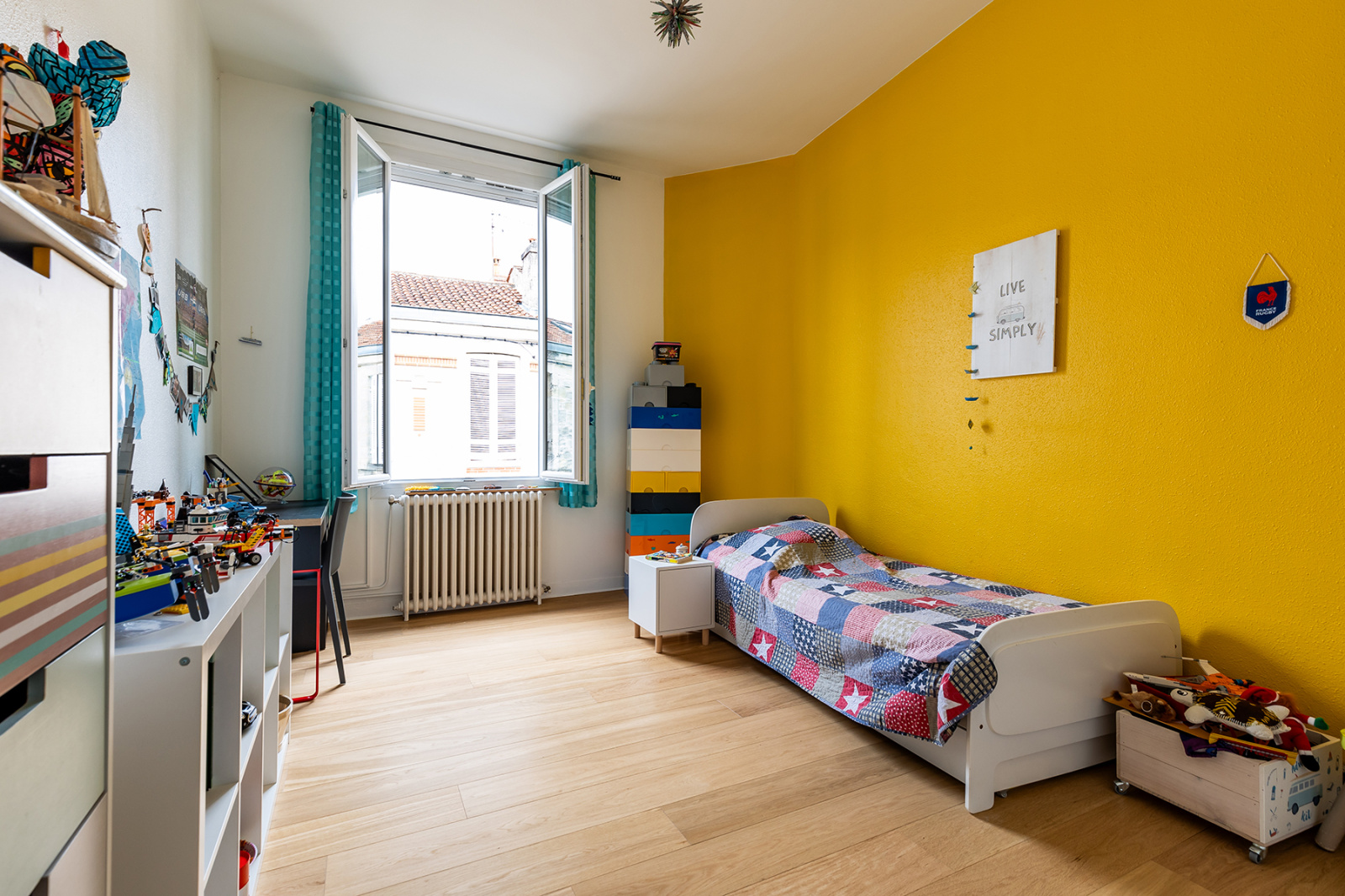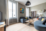 Drivet immobilier vous propose à la vente dans le secteur prisé du Jardin Public, un appartement familial de type t6 en duplex au premier étage d'un bel immeuble d'angle en pierre avec garage privatif.