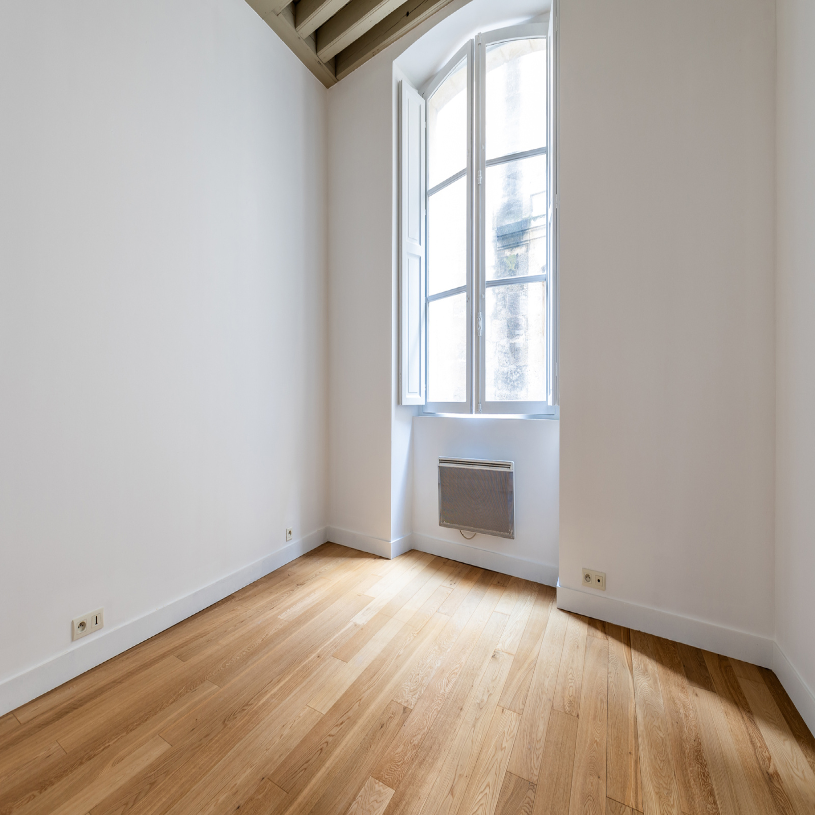 Drivet immobilier vous propose à la vente dans un petit immeuble pierre, au premier étage, un appartement traversant de type T2 à deux pas du Grand Théâtre.
