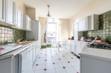 Cet appartement traversant aux prestations anciennes, avec 3,65 mètres de hauteur sous plafond, vous offre coté jour, une très belle entrée, un triple salon/séjour/salle à manger sur le jardin de l'immeuble sans vis-à-vis, une cuisine séparée de 19m2 et une pièce buanderie.