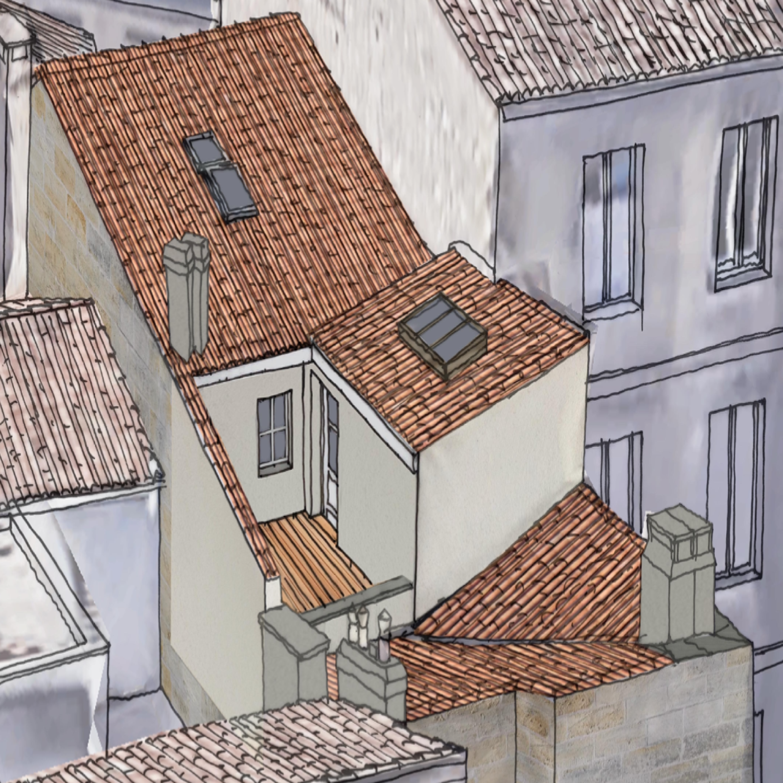 Un permis a été déposé et accepté pour la création d'une terrasse tropezienne sur l'arrière d'une dizaine de m2 en pin sur plots réglables. La création de la terrasse est aux frais du futur acquéreur.