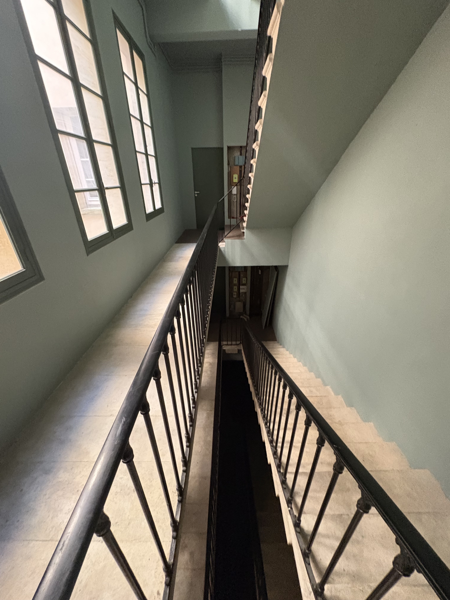 L'ensemble des fenêtres sont en double vitrage, l'appartement donne sur l'arrière de l'immeuble avec aucun vis-à-vis direct, totalement au calme et sur la cour intérieure de l'immeuble ravalée.