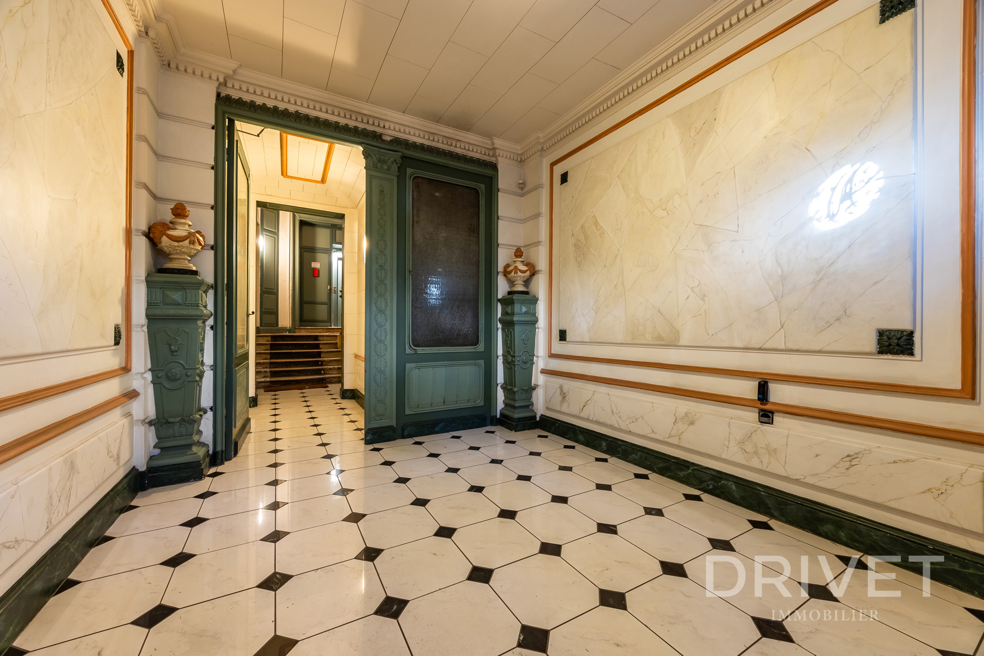 Cet appartement est situé dans un bel immeuble pierre aux parties communes remarquables et porte d'entrée automatique.