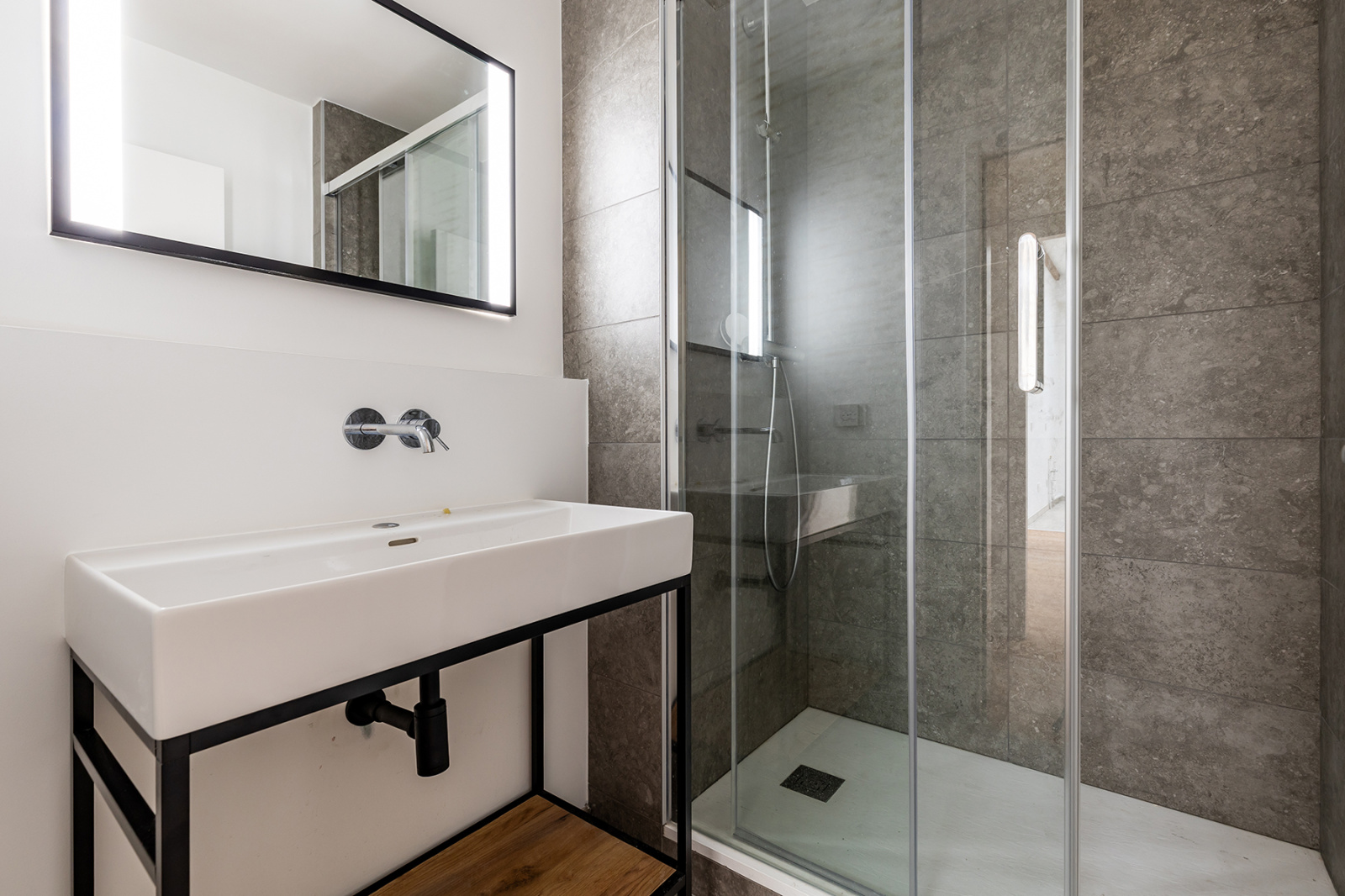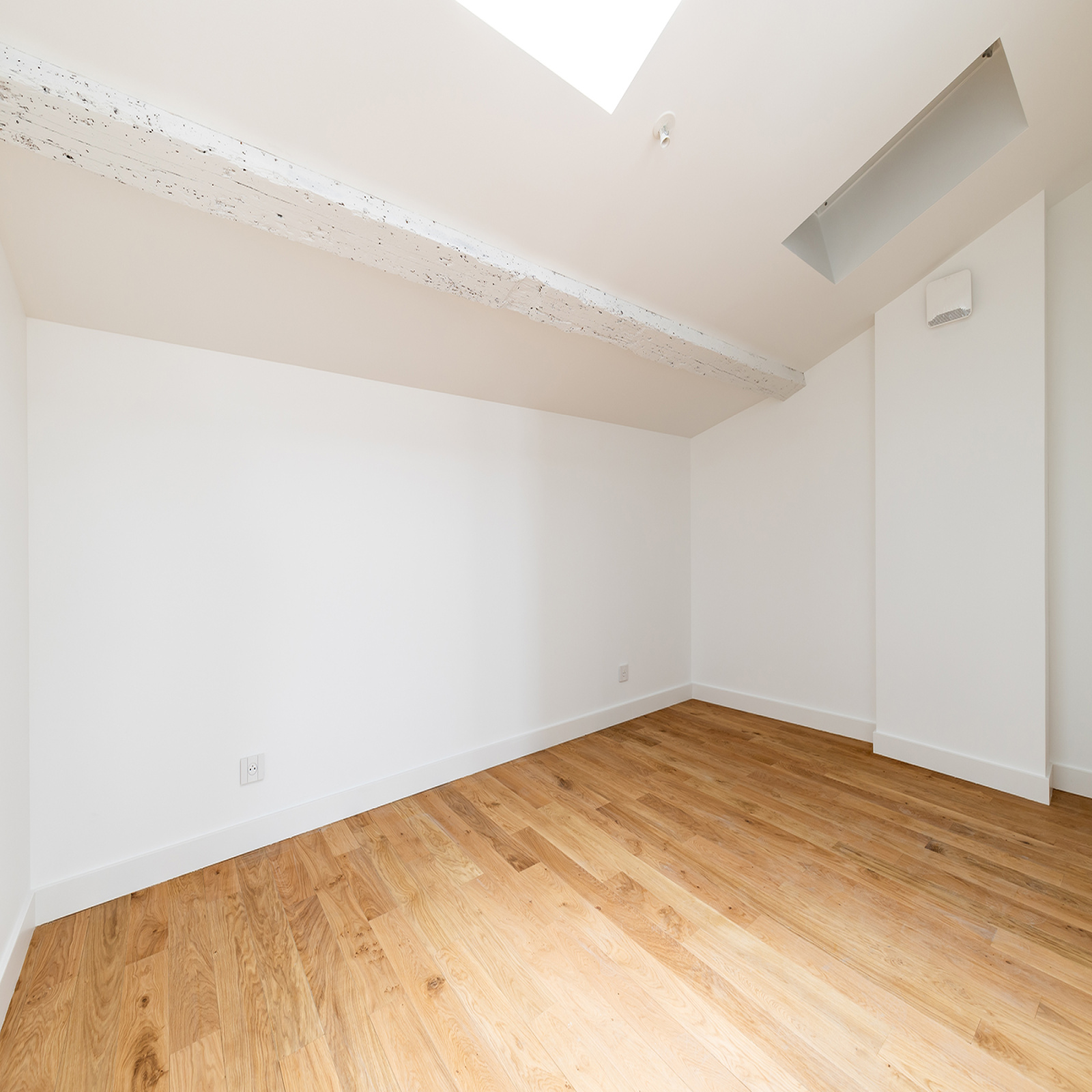 Il se compose d'une entrée avec placards, une pièce de vie baignée de lumière de 64m2, avec patio, cuisine ouverte à aménager, une pièce bureau ou troisième chambre pouvant être isolée et de deux chambres avec salles d'eau privatives.