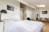 Au 1er niveau vous découvrirez une vaste pièce à vivre baignée de lumière grâce à 3 grandes fenêtres et ses murs en pierre apparente.