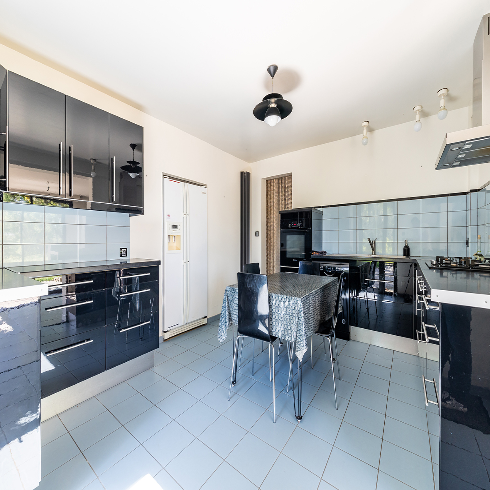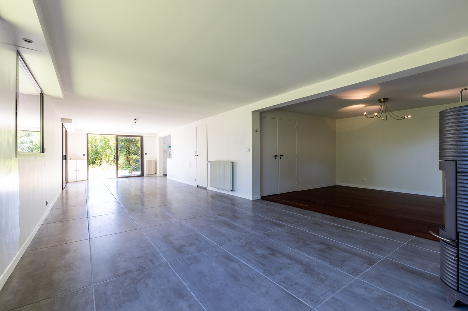 La maison se compose au rez de chaussée d'une grande pièce de vie avec baies vitrées coulissantes, un salon TV, une cuisine séparée équipée, une arrière cuisine, une cave et un espace rangement/garage. A l'étage, cinq chambres et deux pièces d'eau.
