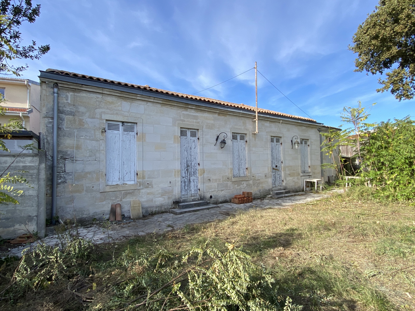 Un permis de construire a été déposé, accepté et purgé de tout recours pour démolition et construction de deux maisons neuves jumelles en R+1 et combles aménagées en façade sur rue et rénovation avec extension d'une maison existante en R+0 en font de parcelle, toutes les trois avec piscine individuelle, jardin paysagé et garage. La surface de plancher autorisé 703,40m2.