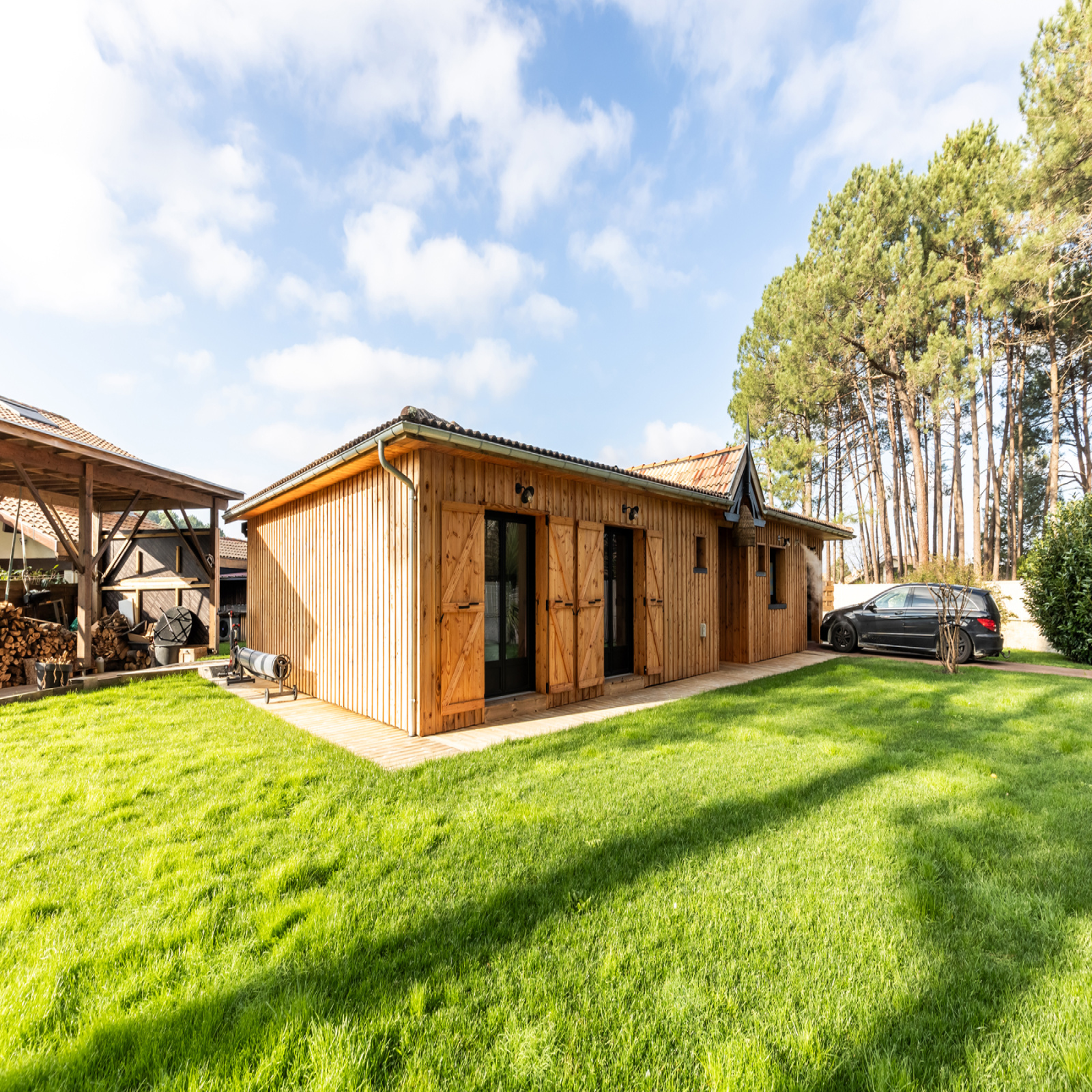 Un grand garage d'une vingtaine de m2 collé à la maison pouvant être amenagé en une cinquième chambre de type suite parentale.