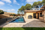 La piscine est composée d'une membrane PVC armé et chauffée pour pouvoir en profiter quasiment toute l'année.