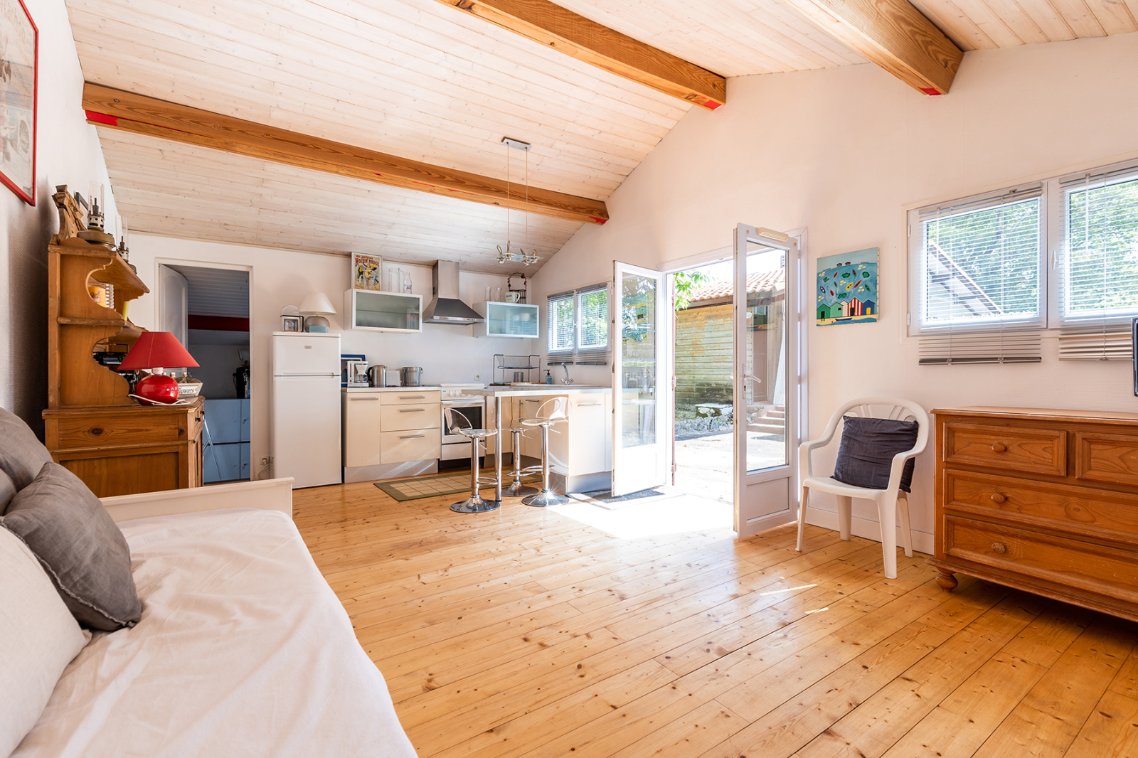 En fond de parcelle, deux dépendances, un grand studio et un T2 en bon état.