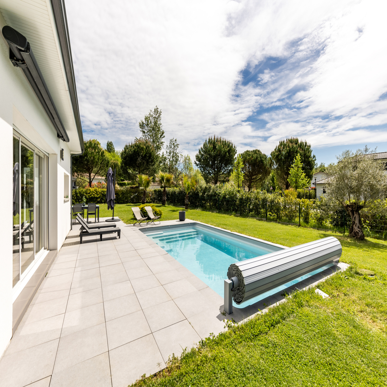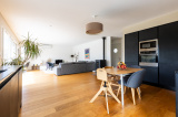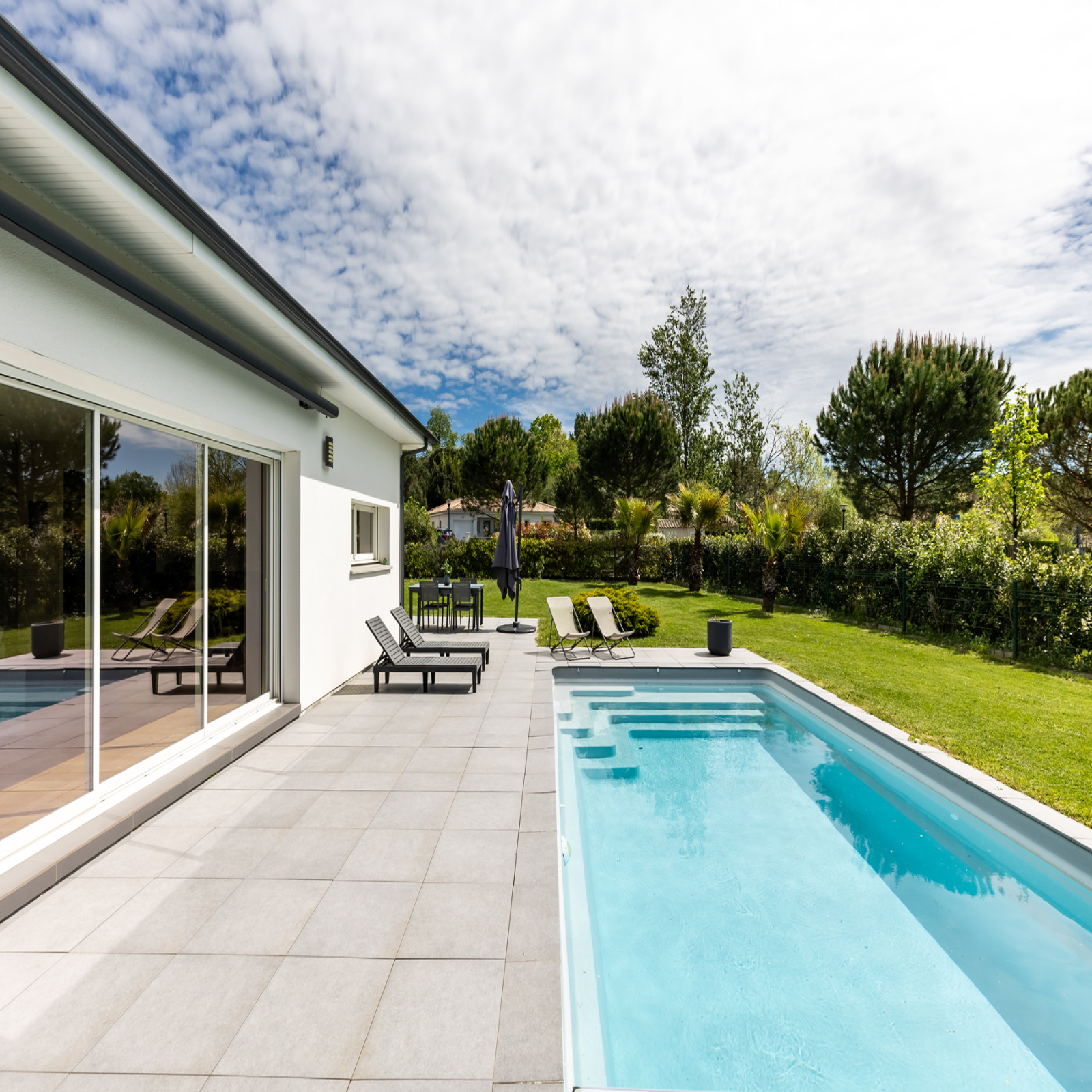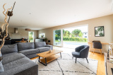 Elle se compose d'un vaste séjour de 48m² lumineux exposé plein sud avec une cuisine aménagée et équipée ouverte sur la pièce de vie, offrant un accès direct à la terrasse et la piscine, parfait pour profiter des beaux jours en toute convivialité.
